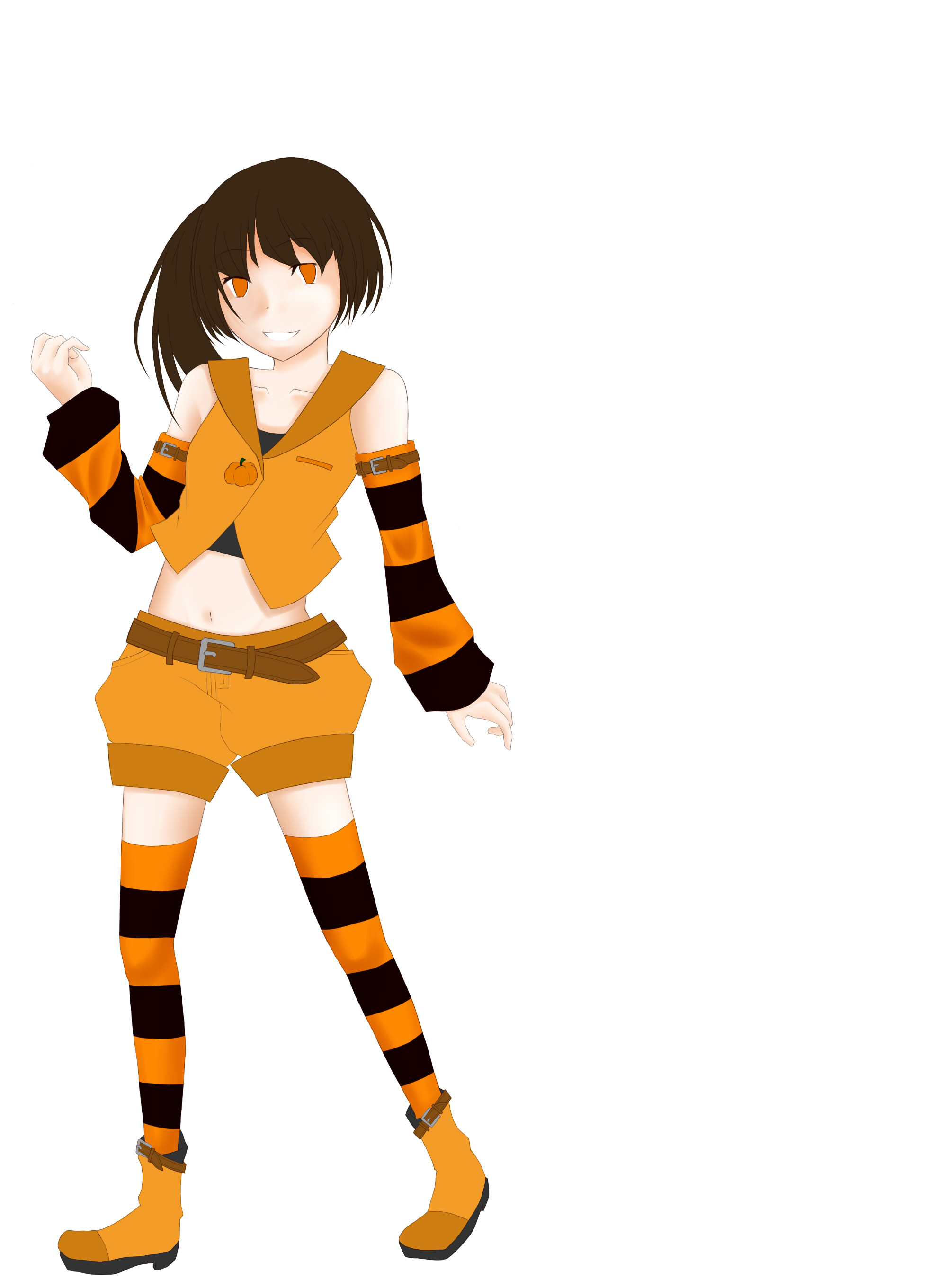 かぼちゃ色、チェック、ベルト、カボチャ・黒2、金具・ヘタ、髪、白、目